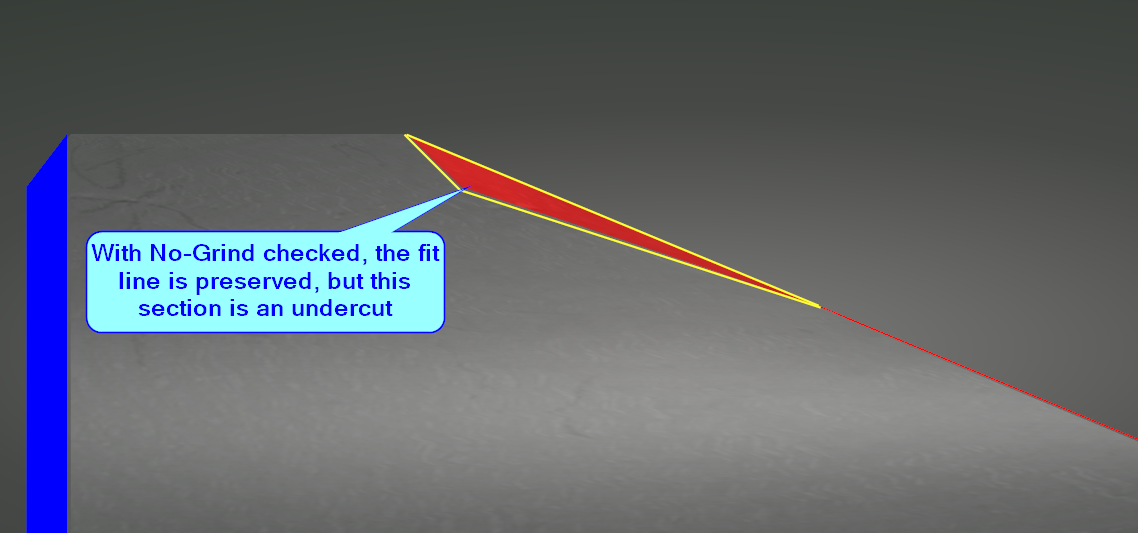 Without "No Grind"-Optimal fit. Leave the excess metal that could not be cut so that the excess can be ground out. This results in a fit with no undercut.