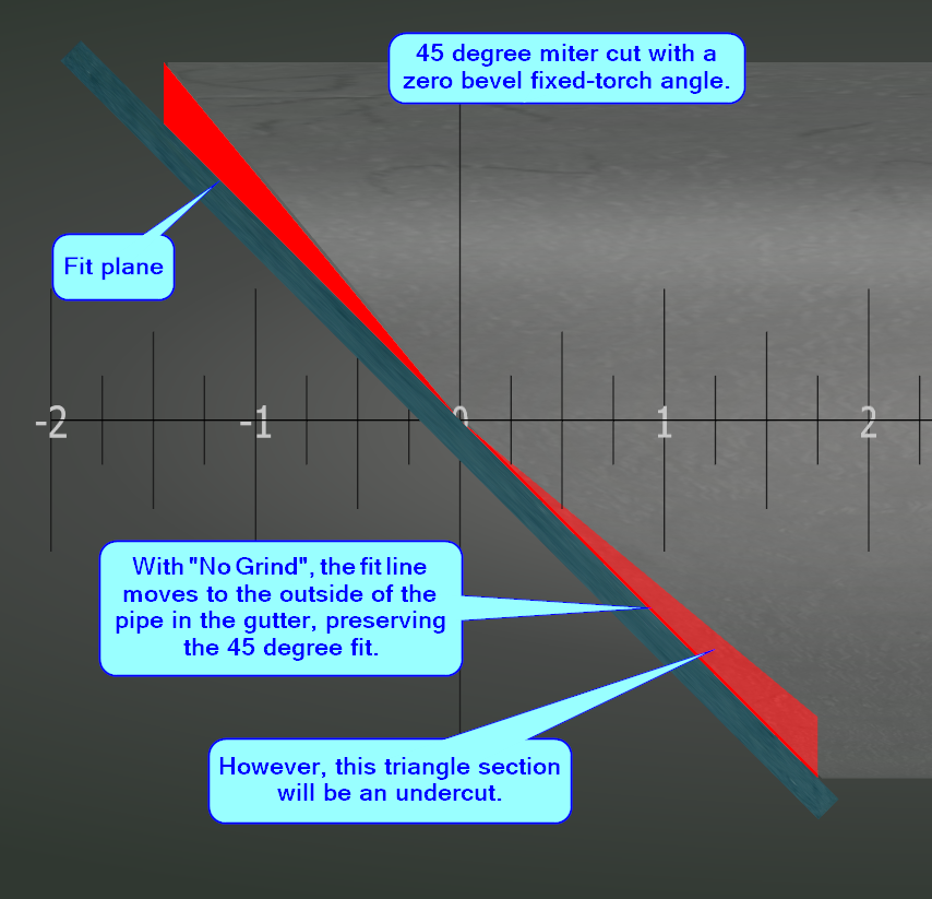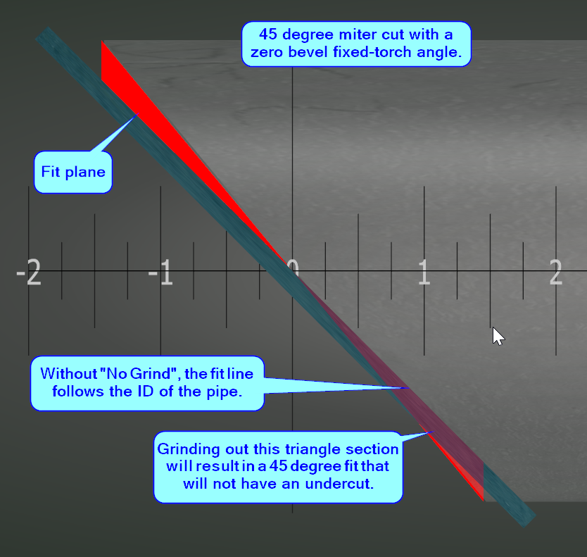 With "No Grind"-a fit without grinding, but with an undercut. In this mode, PypeServer will shift the torch to keep the fit edge on the desired fit line, even though it will undercut the pipe.