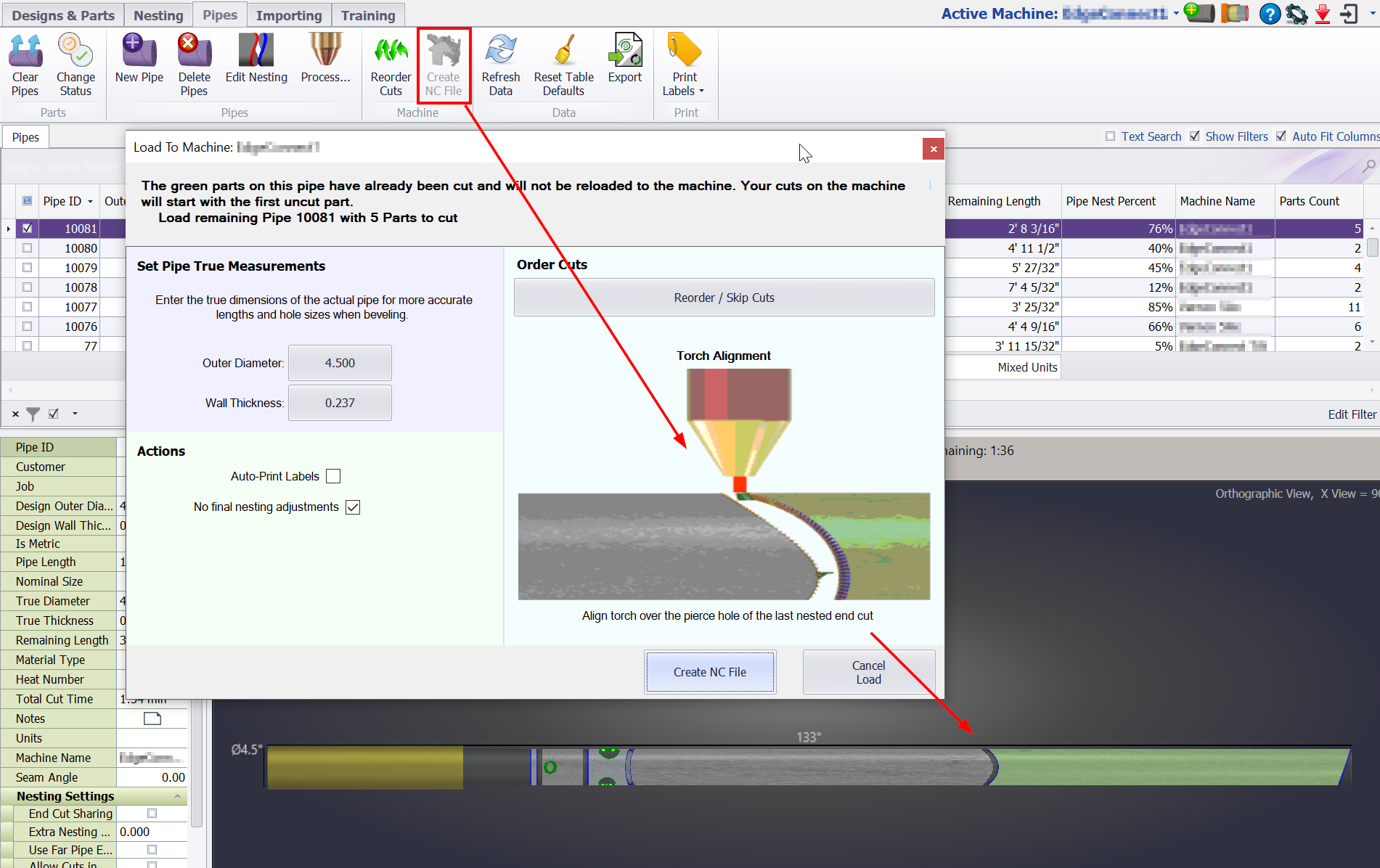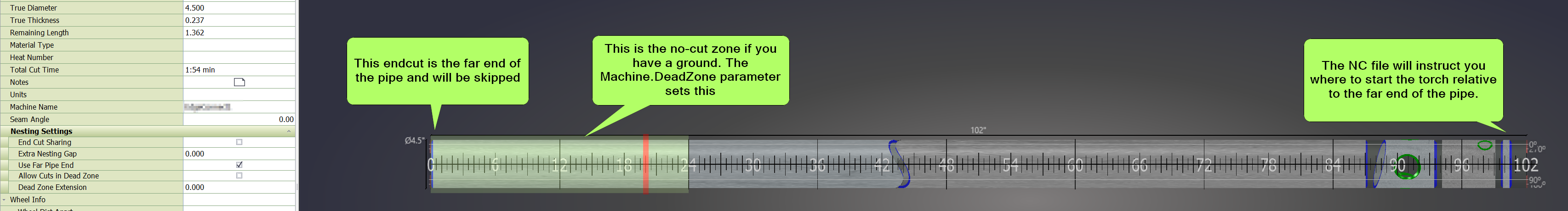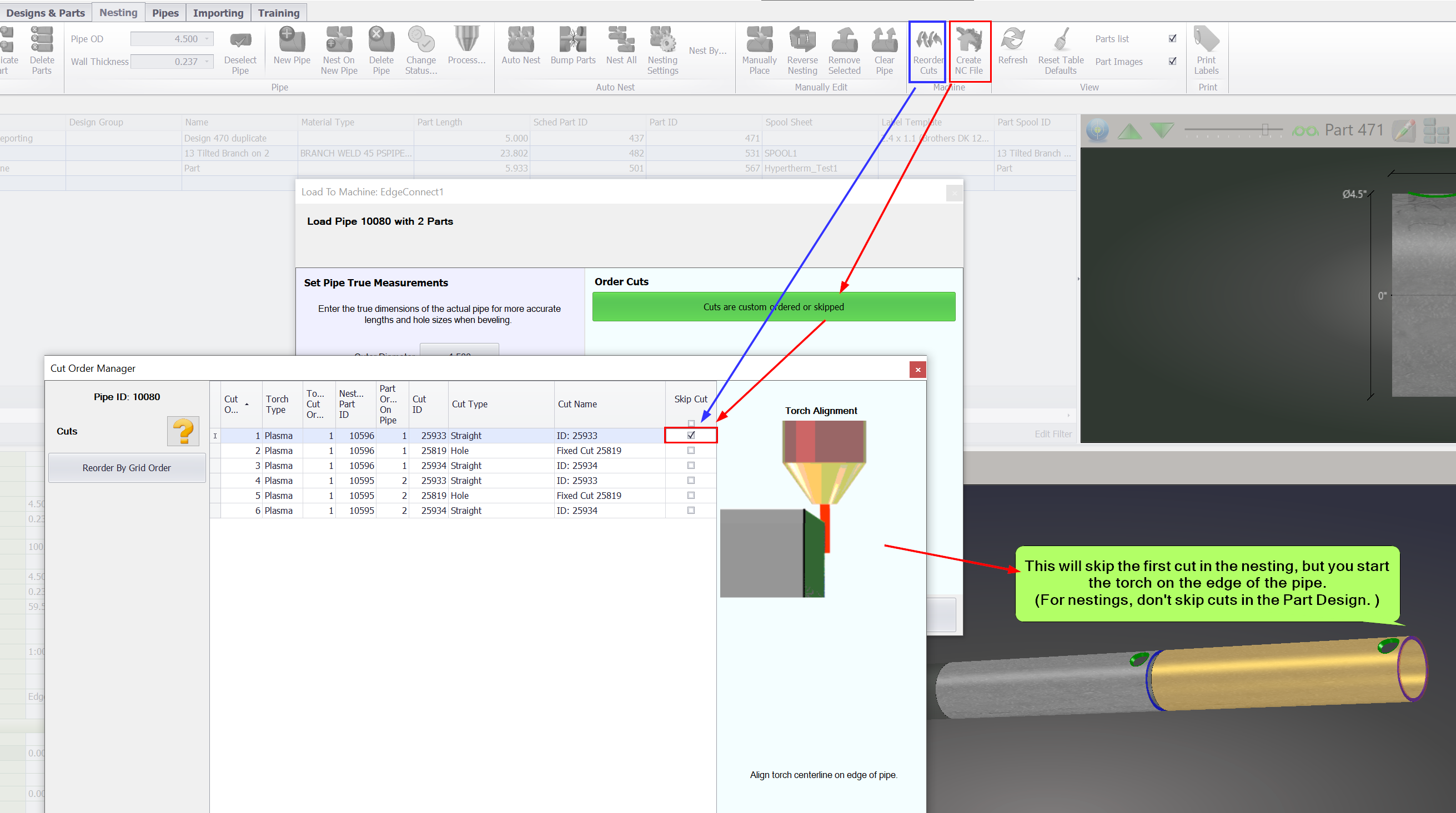 This is for when you want to use the end of the pipe that you're starting the program on. In this case you will move the torch centerline to the edge of the pipe and start the program. Where in PypeServer programming you skip the end-cut is different between loading a single part vs loading a pipe nesting.
