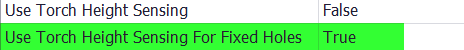 For these holes, set Use Torch Height Sensing for Fixed Holes to true.